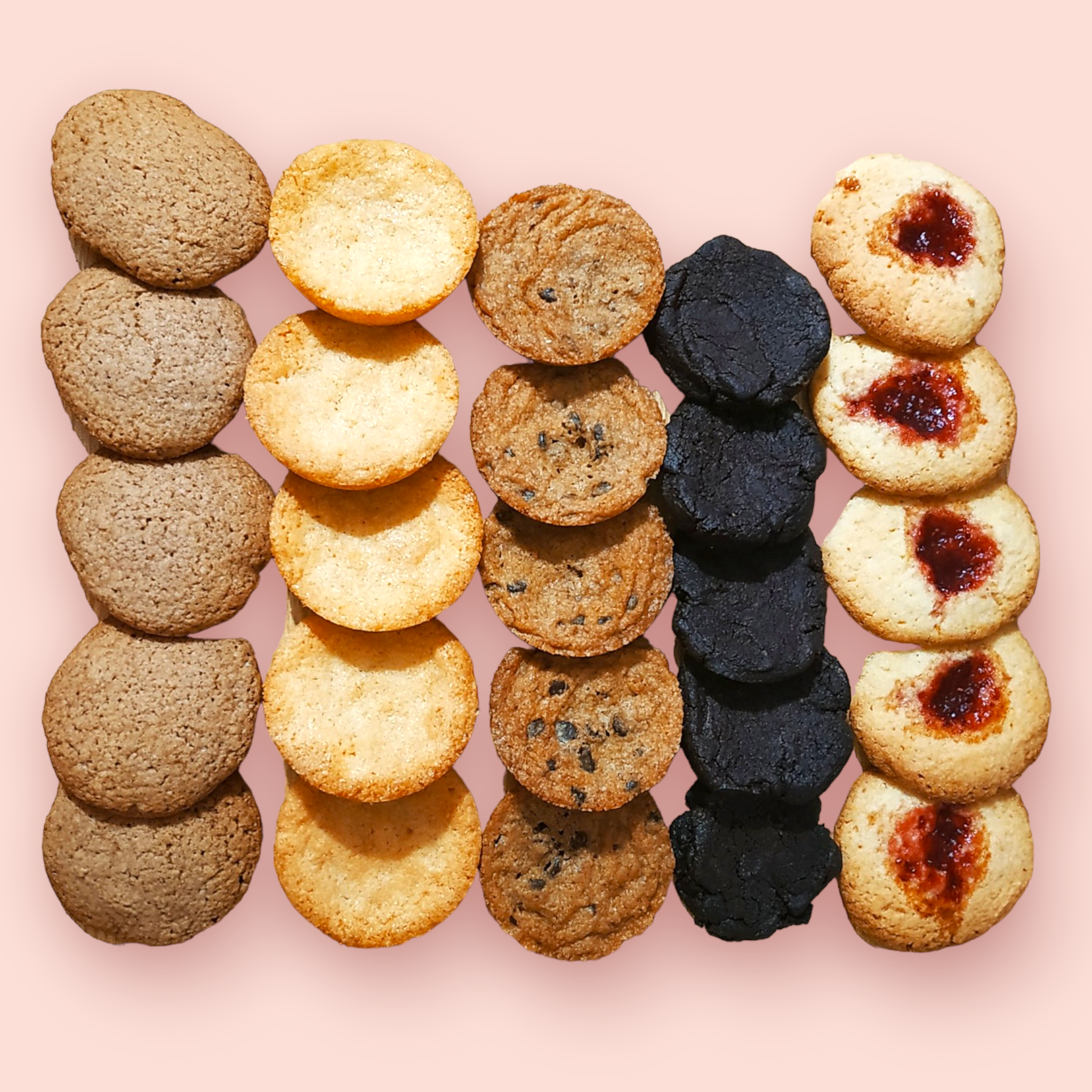 Bredele con mermelada de fresa: Deléitate con nuestras galletas de mantequilla con toque de vainilla, y un corazón de mermelada de fresa. Frescas y dulces, se presentan como el complemento sin gluten perfecto para tu desayuno, merienda o la hora del té.